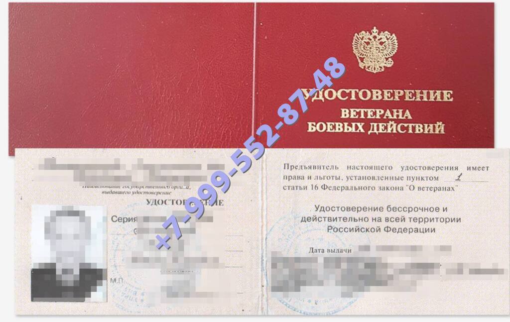 Удостоверение ветерана боевых действий 25000 руб + пересылка